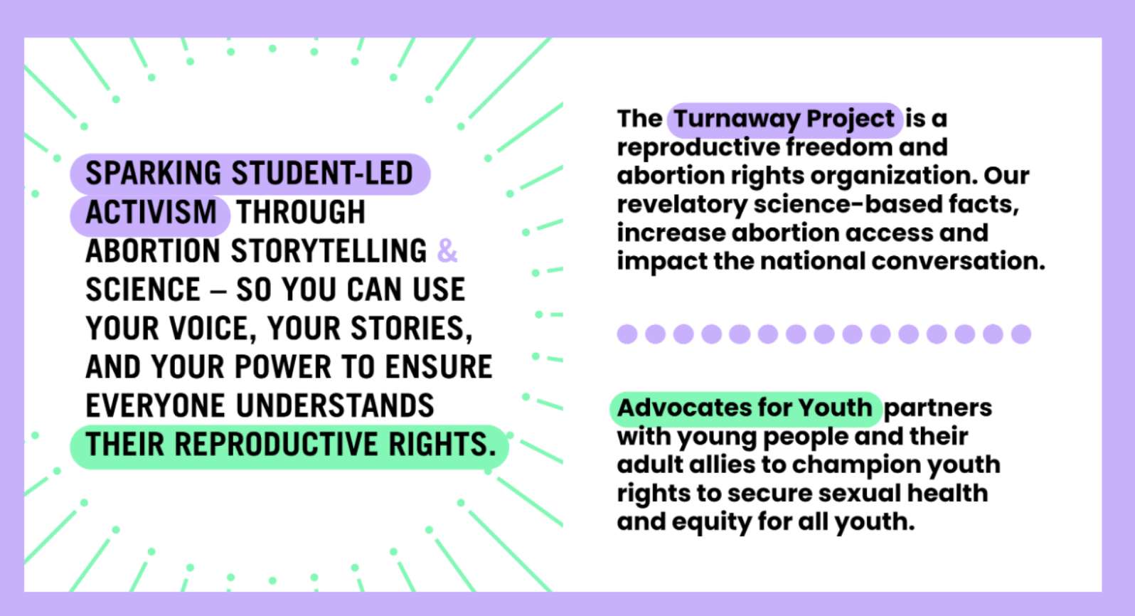 The Turnaway Project has partnered with Advocates for Youth to bring young people together in the fight to dispel myths about reproductive and sexual health. All campaign materials and tools were co-created by an advisory board of young people.